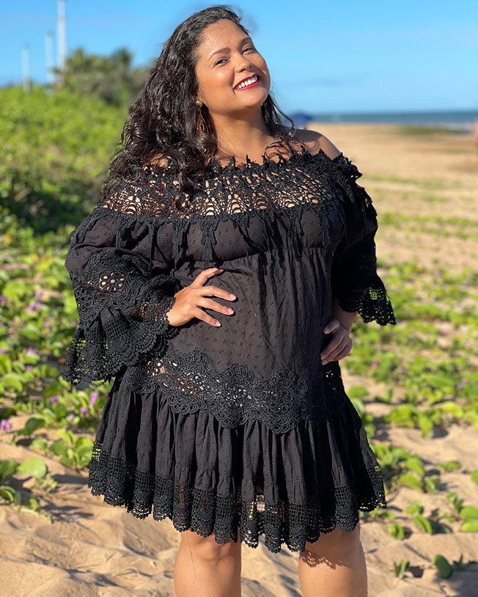 Bata  em renda Antica Sartoria. Modelo ombro a ombro estilo ciganinha.  Tamanho único e com  bordados em acabamento de Macramê.
