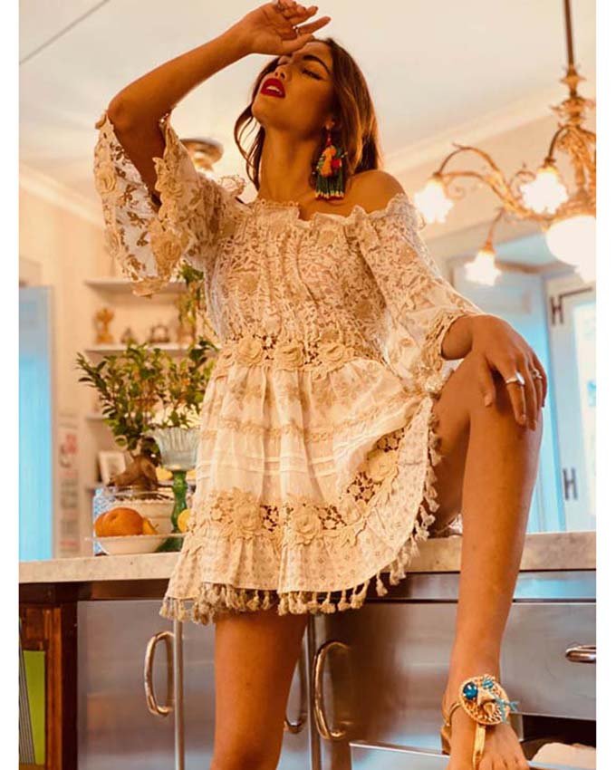 Bata Antica Sartoria em algodão e renda de Macramê.
